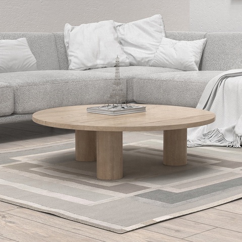 โต๊ะกาแฟหินดีไซน์มีระดับ,โต๊ะกาแฟหินอ่อนทรงกลมสำหรับห้องนั่งเล่นบ้านสวนหินอ่อนสีเบจแบบนอร์ดิก