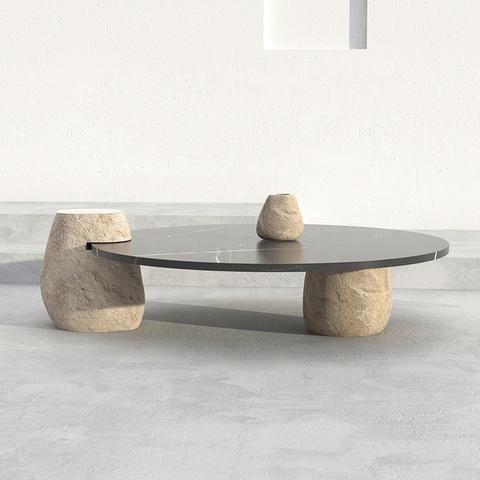 โต๊ะกาแฟด้านข้างหินอ่อนหินออกแบบสีดำที่ทันสมัย,ห้องนั่งเล่นที่กำหนดเองแม่น้ำหินสวนรอบหินอ่อนโต๊ะกาแฟที่ทันสมัย